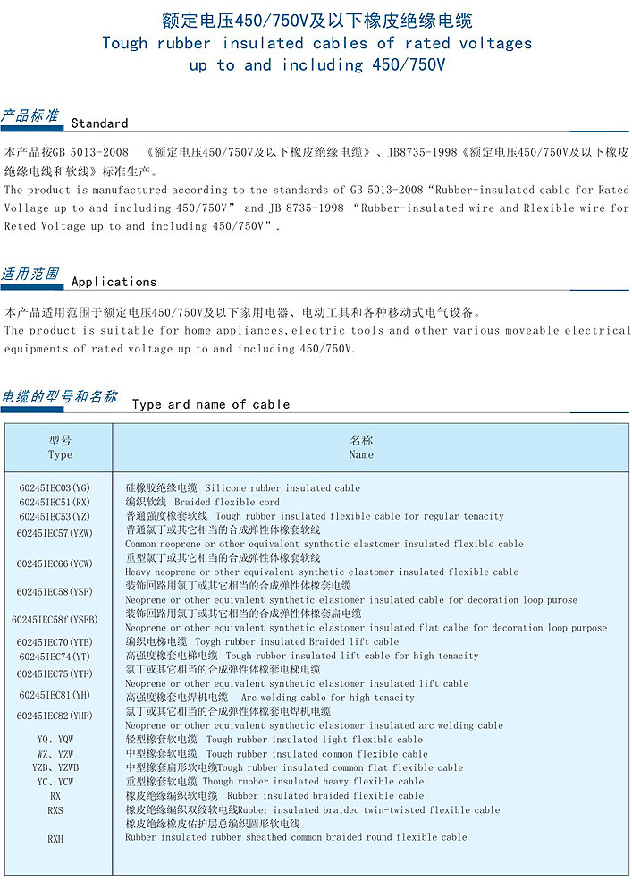 額定電壓450/750v及以下橡皮絕緣電纜